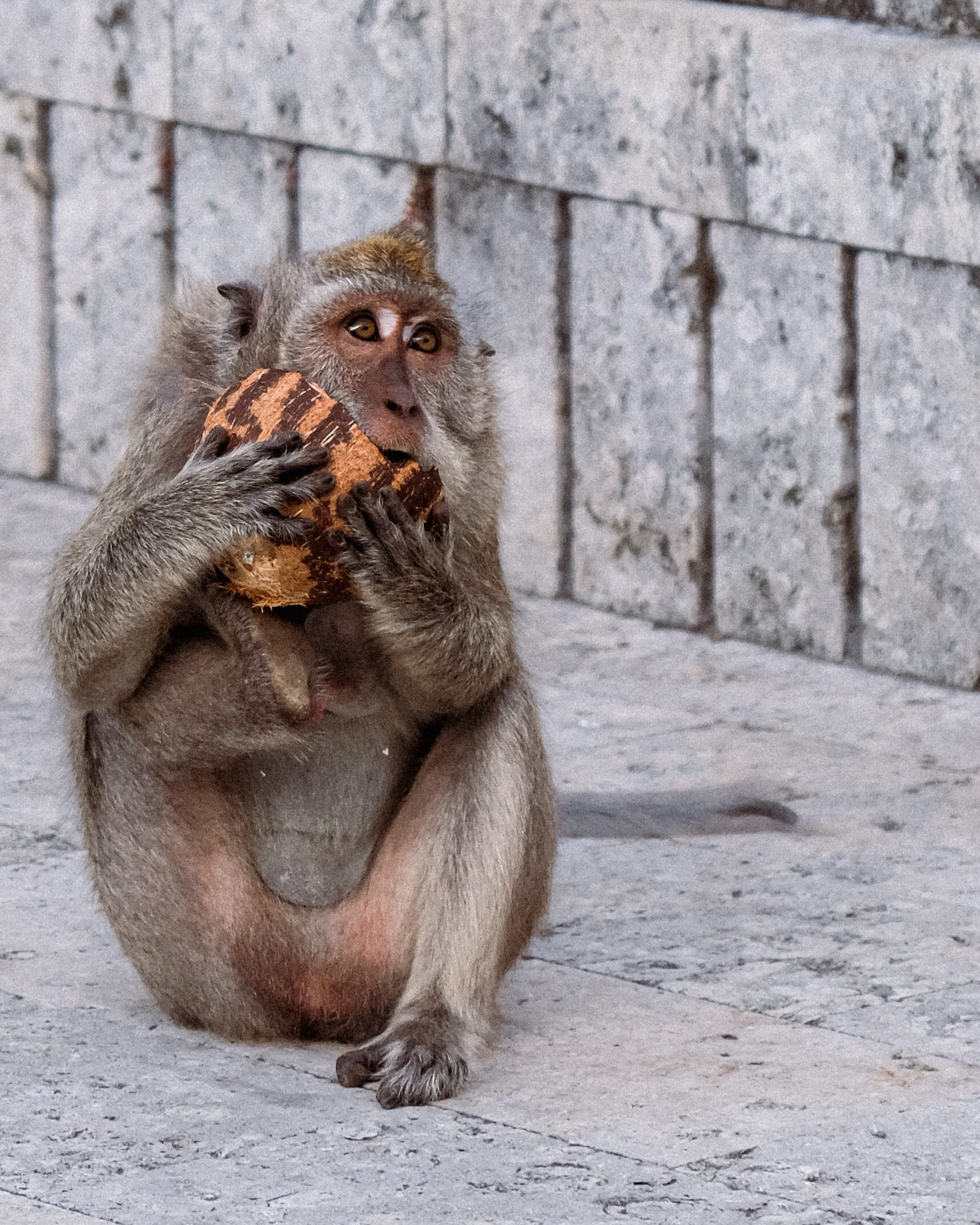 brown monkey sitting on gray concrete floor during daytime