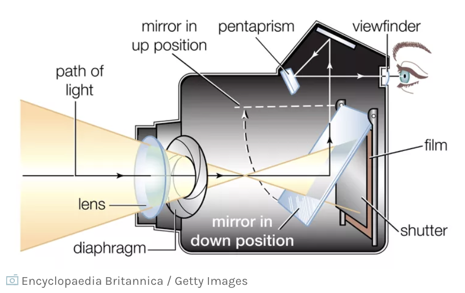 Mirror in Up PositionWhen the shutter is pressed, the mirror flips up to allow light to hit the film or sensor directly. This is crucial for taking the photograph.
